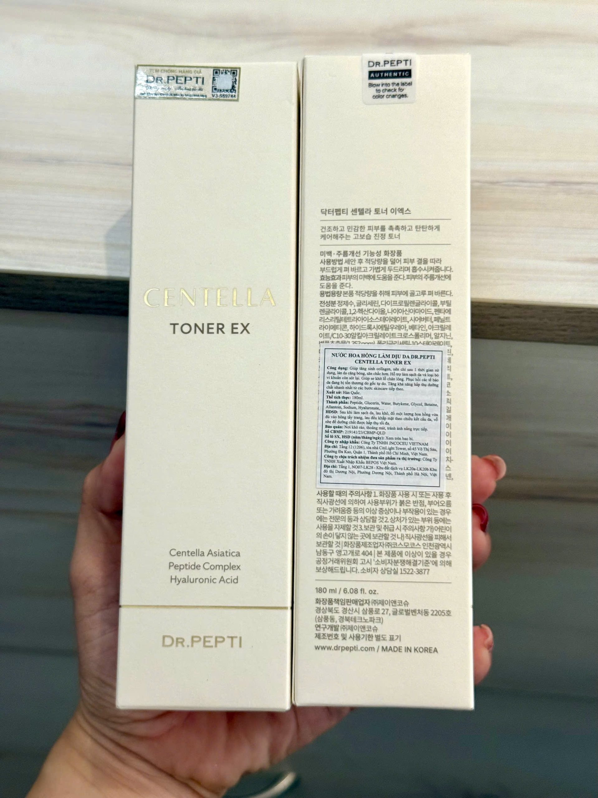 Nước hoa hồng Dr.Pepti Centella Toner EX là dòng toner cao cấp đến từ thương hiệu nổi tiếng Dr.Pepti+ Hàn Quốc. Sản phẩm nổi bật với khả năng cấp ẩm, làm dịu, phục hồi da nhanh chóng nhờ chiết xuất rau má tinh khiết cùng nhiều dưỡng chất quý giá. Nếu bạn đang tìm kiếm một loại toner giúp da mềm mại, khỏe mạnh, phục hồi sau tổn thương thì Dr.Pepti Centella Toner EX chính là lựa chọn lý tưởng!