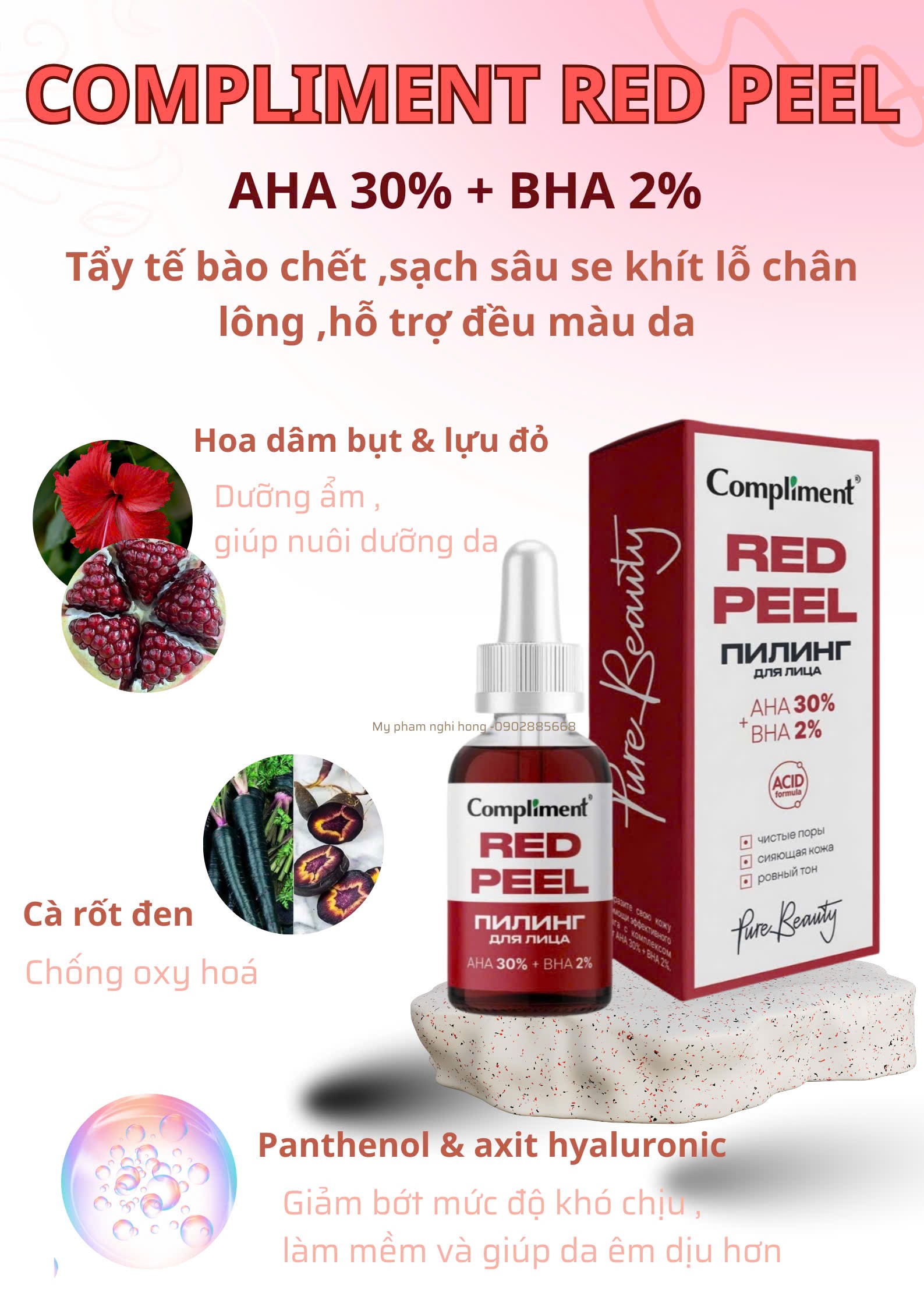 Serum Compliment Red Peel AHA 30% + BHA 2% 27ml – Peel da sinh học, giảm mụn, sáng da
