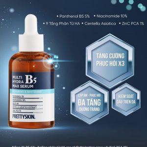 Tinh chất Pretty Skin Multi Hydra B5 Max Serum được nâng cấp với công thức cực kỳ đặc biệt dành riêng cho làn da dầu, mụn, kiểm soát lượng dầu tiết ra trên da, cân bằng độ ẩm, dưỡng da trắng sáng và hỗ trợ phục hồi da khỏe mạnh.